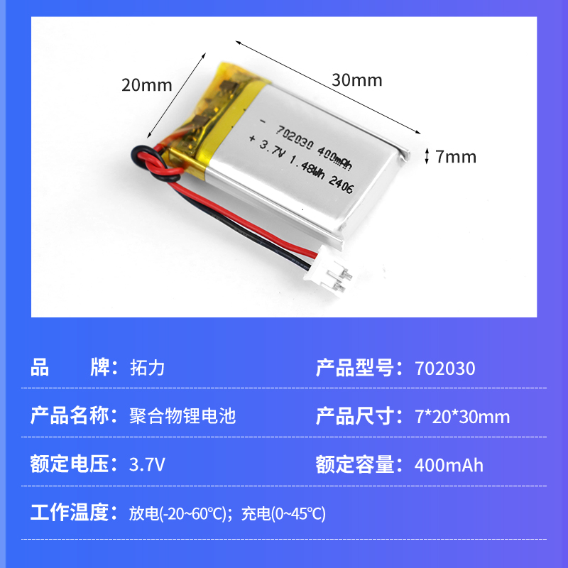 3.7V400mah 702030 聚合物鋰電池