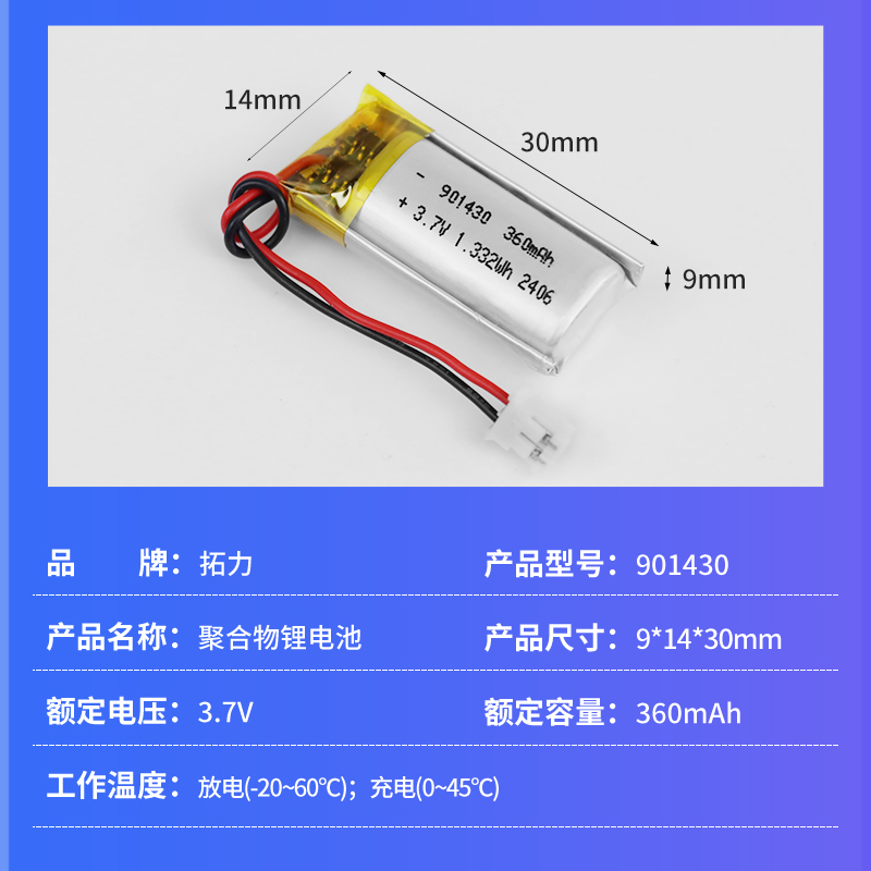 3.7V360mah 901430 聚合物鋰電池