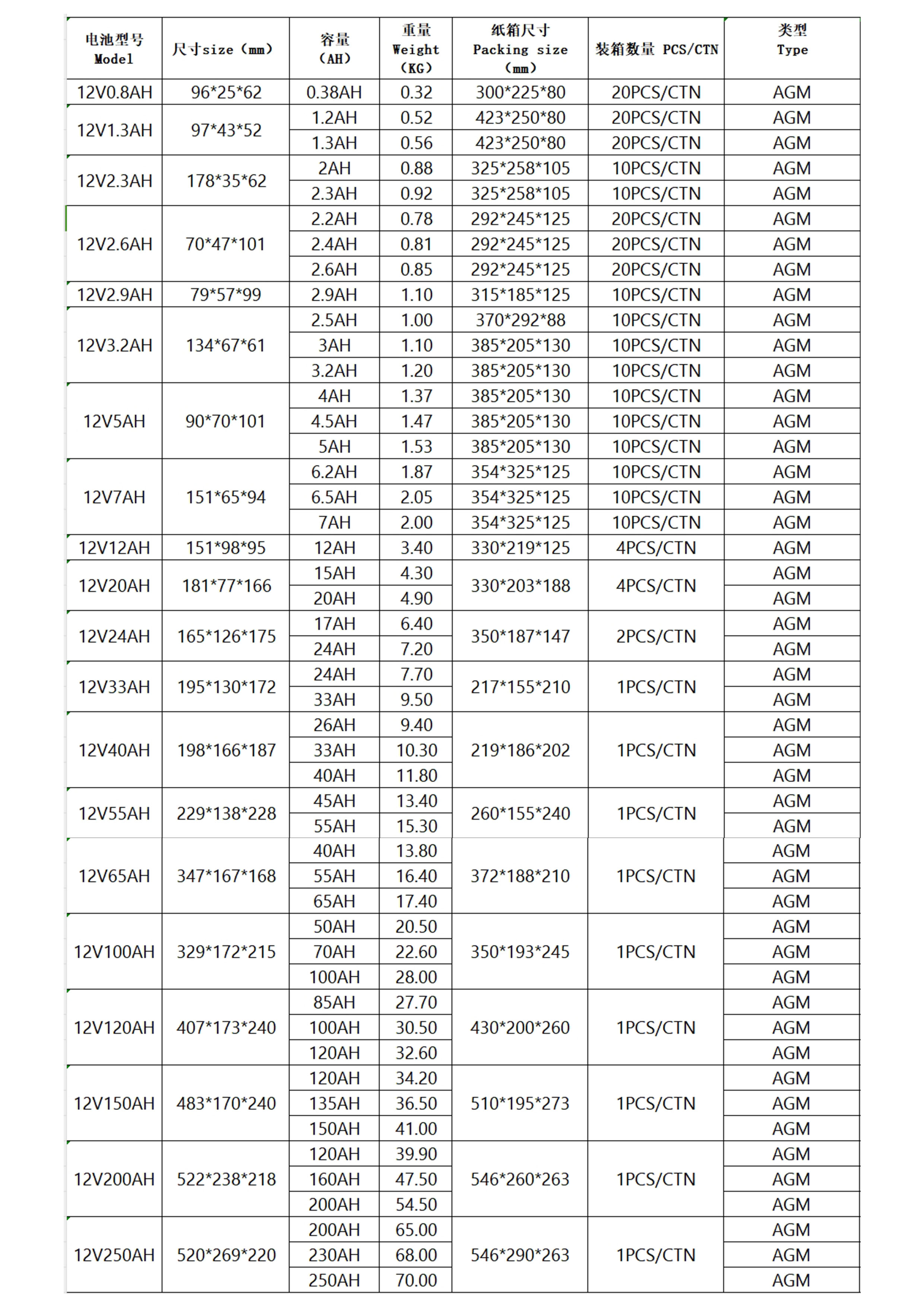 | 2 | 額定容量 | 0.8AH-3000AH |